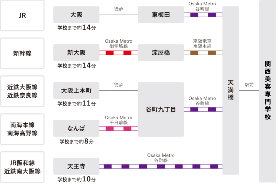 Osaka Metoroと京阪線がクロスする便利な立地。通学はもちろん、キタやミナミに遊びに行くにも好アクセス