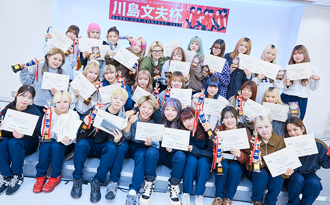KANBIカットコンテストカットの第一人者でKANBIの顧問である川島文夫先生が審査委員を務めるコンテスト。世界的なヘアクリエーターの川島先生が直接ひとつひとつの作品を手にとって審査し、評価をして頂けるこのコンテスト。数多くのコンテストはあれど、日本の美容界の絶対的NO.1ヘアデザイナーである川島先生に直接みていただけるというめったにない機会!数ある美容専門学校の中でもこの特権はKANBIだけ!