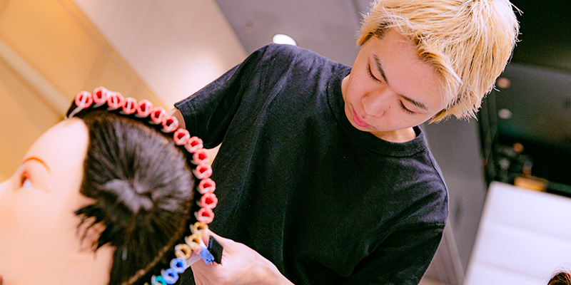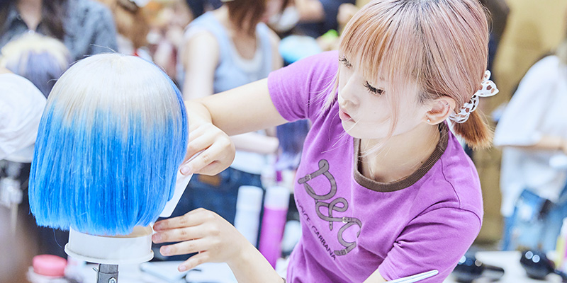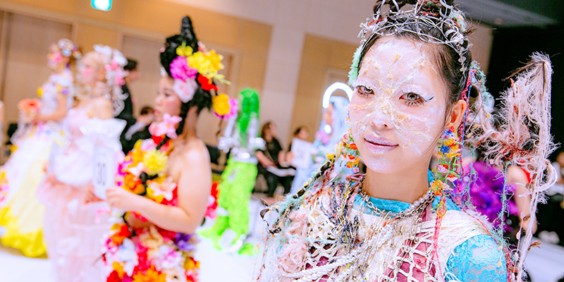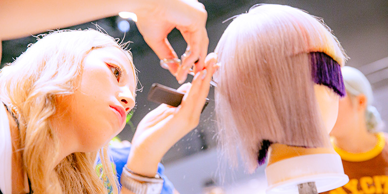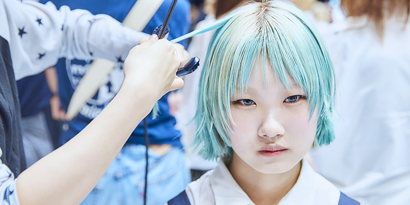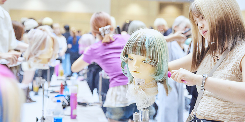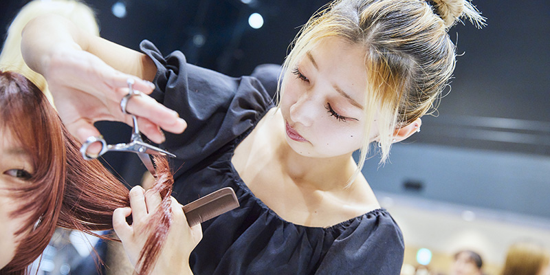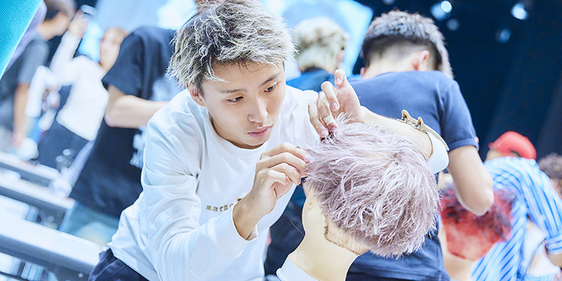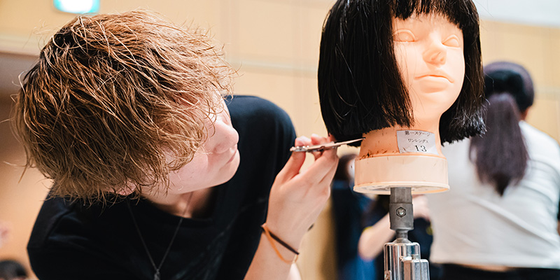 カットやヘアメイクをはじめ、様々な分野のコンテストに学生たちが挑戦し、ステージ上で真剣勝負